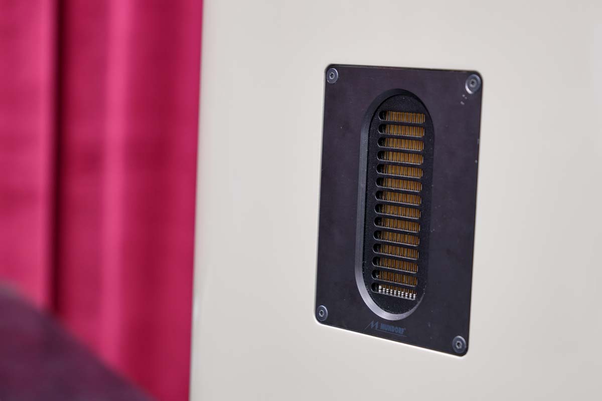This maxim is also reflected in the driver configuration. Four Accuton drivers are used as sound sources, grouped around a Mundorf Air Motion Transformer in a D’Appolito arrangement. The top and bottom units are responsible for the low end, while the two inner drivers cover the low-midrange. The AMT takes over at around two kilohertz – airy, fast, and with enormous resolution. Rather than being housed in the cabinet, the crossover has (as already mentioned) its own wooden enclosure. And here we also find the cream of electrical engineering coming together: Mundorf components, quality internal wiring, and massive connection terminals. The crossover is designed to operate stably even at very high currents without introducing any kind of coloration. Furthermore, all of this is wrapped in a housing that dwarfs most mono power amplifiers and weighs just as much. Resonances won’t survive here, and interference between electrical components and drivers is virtually impossible.