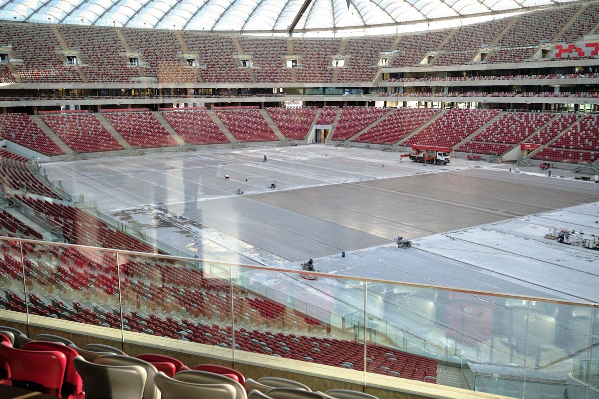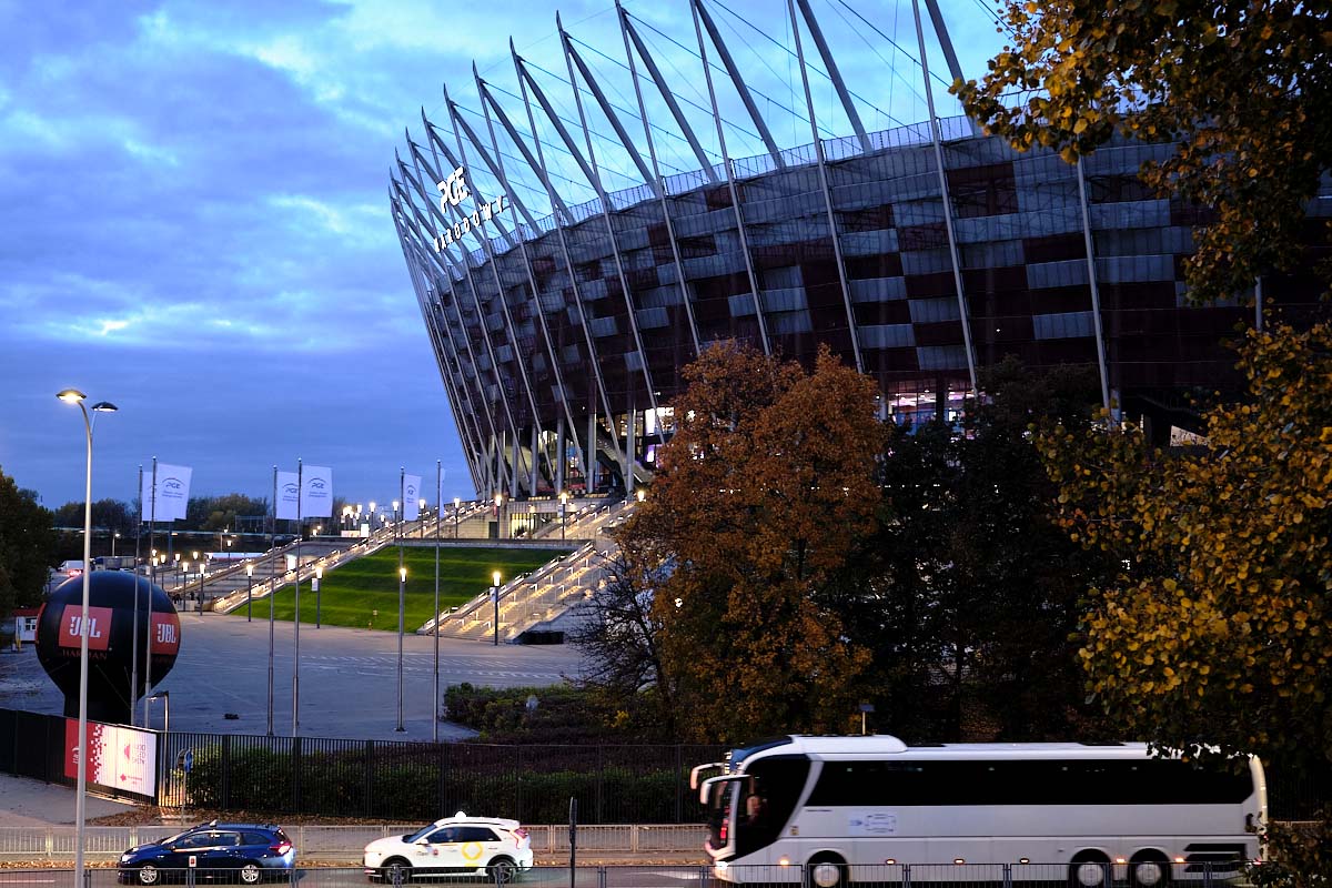 Anyone feeling a bit suffocated in the Radisson Blu Sobieski could simply dash across the chilly, wet street to the Golden Tulip hotel across the huge intersection, where the wider hallways and larger rooms offered a more relaxed atmosphere – or hop on the shuttle bus, running every half hour, to the stadium, where the new floor meant there was more to explore than ever before.