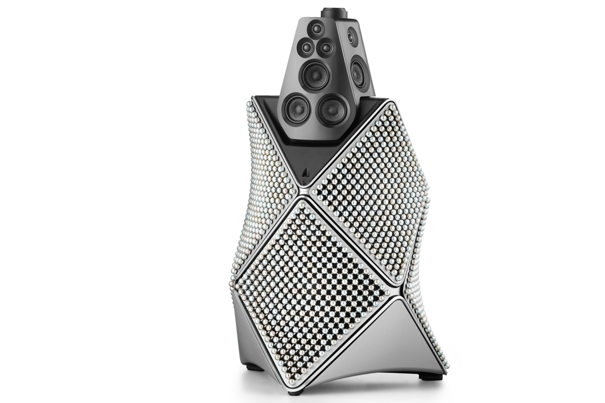 The Zenith Edition embodies sculptural precision and visual elegance. Each of the six panels features 289 anodized aluminum spheres arranged in seven pearl-inspired colors, interacting with light and the surrounding environment. The front cover is bead-blasted, dark gray anodized, and reminiscent of an oyster shell. The speaker is topped with a circular mother-of-pearl inlay that matches the diameter of the aluminum spheres. Curved panels follow the contours of the housing, while polished aluminum crowns and semi-transparent textile covers create a balanced interplay of visual and acoustic elements. According to the manufacturer, the result is a dynamic visual presence that complements the Beolab 90’s acoustic performance, turning the speaker into a multi-sensory experience.