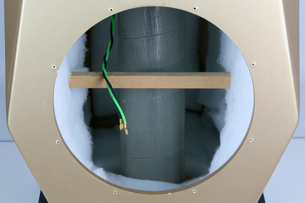 As a consequence, the Diapason team decided to switch to HDF panels as the basic material for the Dynamis cabinet. As Schiavi says, this material “doesn’t sound as dead as something like marble.” Which is certainly true. I’m also glad they decided against using concrete, stainÂless steel or lead for exactly the same reason! Thanks to using high-density fiberboard, they were able to restrict the total weight of the Dynamis to around a hundred kilos. A good portion of this weight is concentrated in the base plate and baffle, both as thick as a master chef ’s chopping board. As with the Dynamis’s smaller siblings, the rest of the weight is distribÂuted across the cabinet’s 13 other sides. Despite its weight, the Dynamis is still relatively easy to move around. Soft rollers on the base enable you to maneuver it about until you find the perfect listening position in your room. These rollers don’t ruin the ballroom’s expensive flooring or the speaker’s performance. Once they’re firmly in position, there’s no movement at all. Should there be any problems, however, DiaÂpason offers the option of selecting adjustable feet—the professional’s choice. Simply rememÂber to check the appropriate box when placing your order.