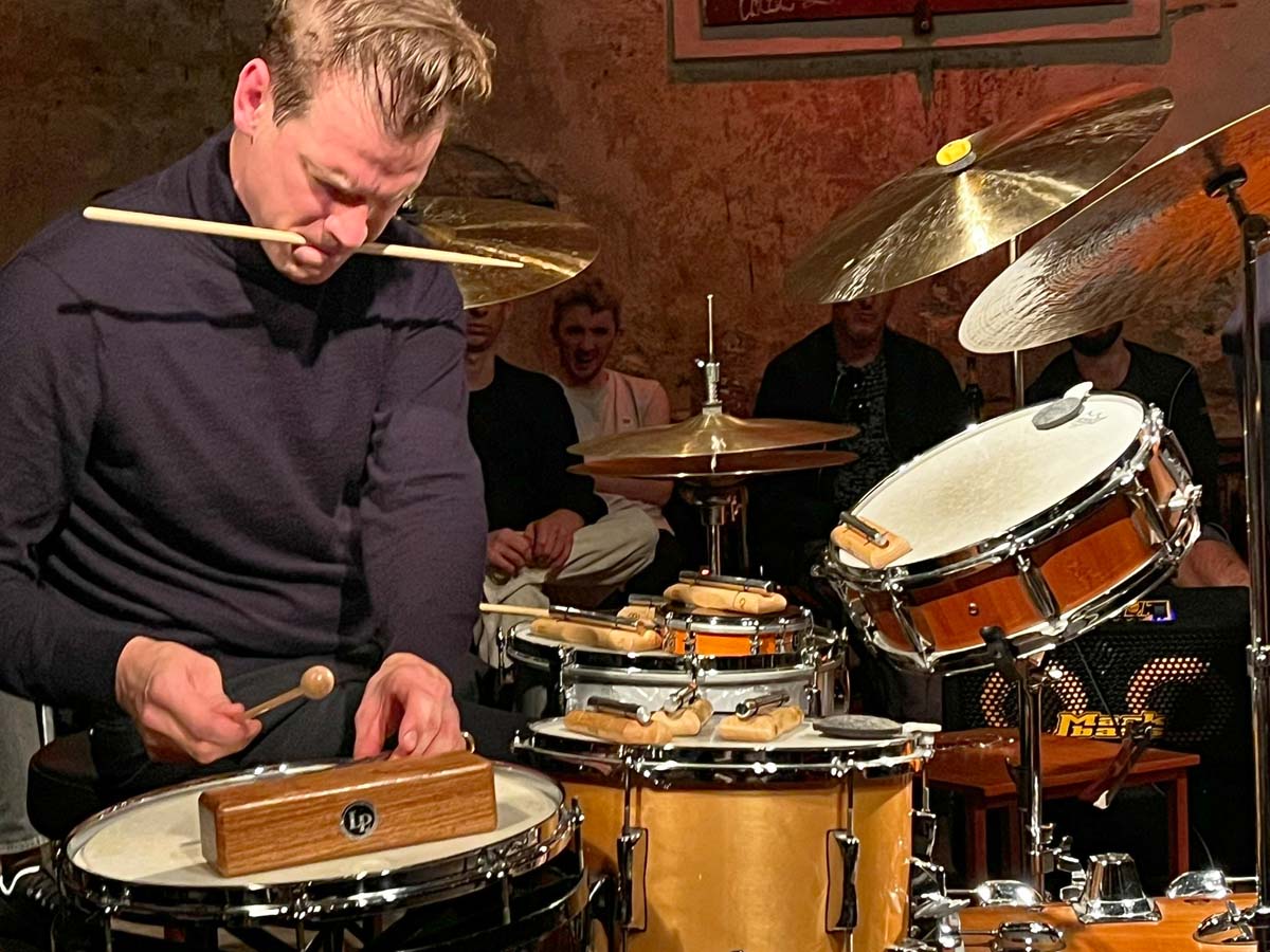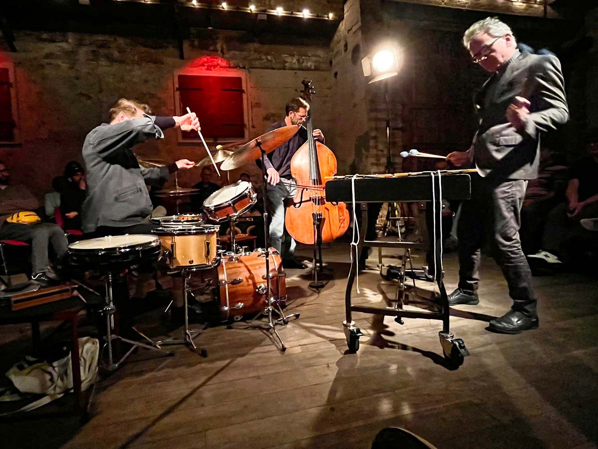 The 15th anniversary concert at Berlin’s Musikbrauerei was more than just a retrospective. It showed how deeply the ensemble has internalized its principles – and how vividly they come to life in performance. Located in the Prenzlauer Berg district, the Musikbrauerei provided an ideal setting: a building with winding corridors, a dark atmosphere, and excellent acoustics. The venue seemed like a physical counterpart to the sonic spaces DLW creates – mysterious, focused, rich in detail. Across two sets, the trio presented a cross-section of its work: excerpts from Grammar, Beats, and Extended Beats – precise and carefully structured, yet never sterile. At times rhythmically explosive, at others marked by an almost chamber-like delicacy of sound. The subtle transitions in timbre, the fragmentation of material, the constant shifts in direction – all demonstrate how masterfully DLW balances form and freedom. That three distinct voices merge into a unified ensemble sound without losing their individuality is no coincidence, but the result of years of shared development. What began as an experimental trio has evolved into an ensemble that reaches far beyond genre boundaries. Anyone curious about how contemporary music can sound today will find a precise and vibrant answer here.