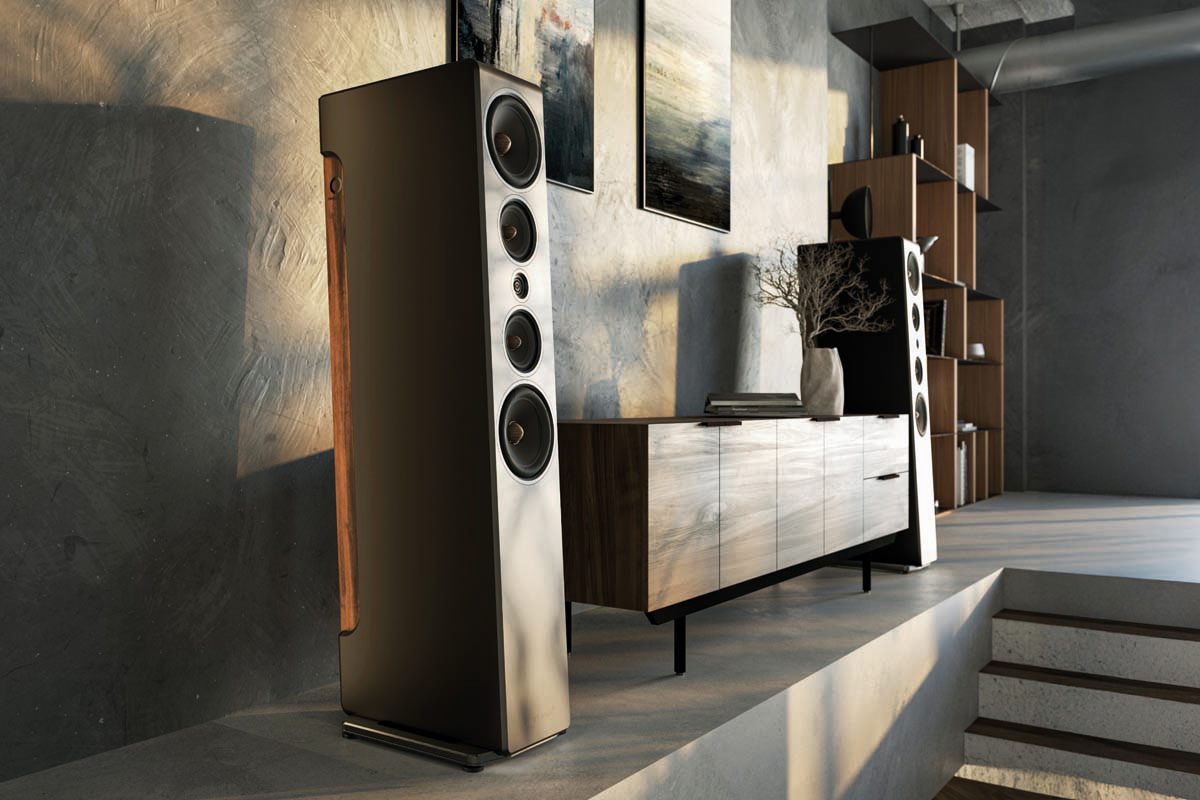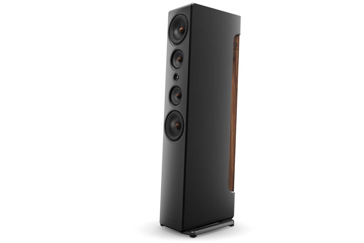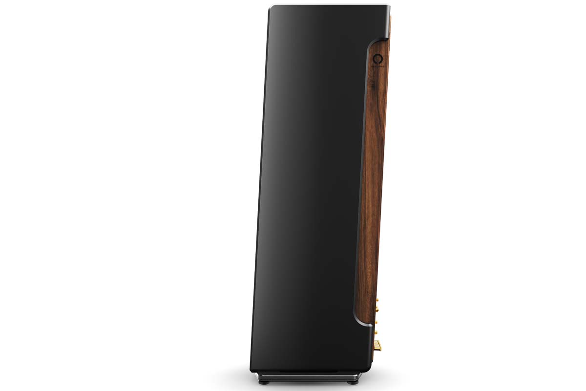 Design: passive 3.5-way floorstanding speaker | Drivers: 2 × 7.5″ woofers (Seas Excel), 2 × 4.7″ midrange drivers (SEAS Excel), 19 mm dual-ring radiator (Scan-Speak Illuminator) | Frequency response (±10 dB): 30 Hz to 40 kHz | Crossover frequencies: 200 Hz, 2200 Hz, 2400 Hz | Nominal impedance: 4 Ω (minimum: 3.6 Ω) | Sensitivity (1 W/1 m): 86 dB | Recommended amplifier power: from 100 W | Features: bi-wiring terminal, rear jumpers for sound tuning, limited to 15 pairs | Finish: satin black with oiled walnut accents | Weight: 36.5 kg | Dimensions (W/H/D): 20/117/45 cm (29 cm width with base) | Warranty: 5 years | Price per pair: around €13,000