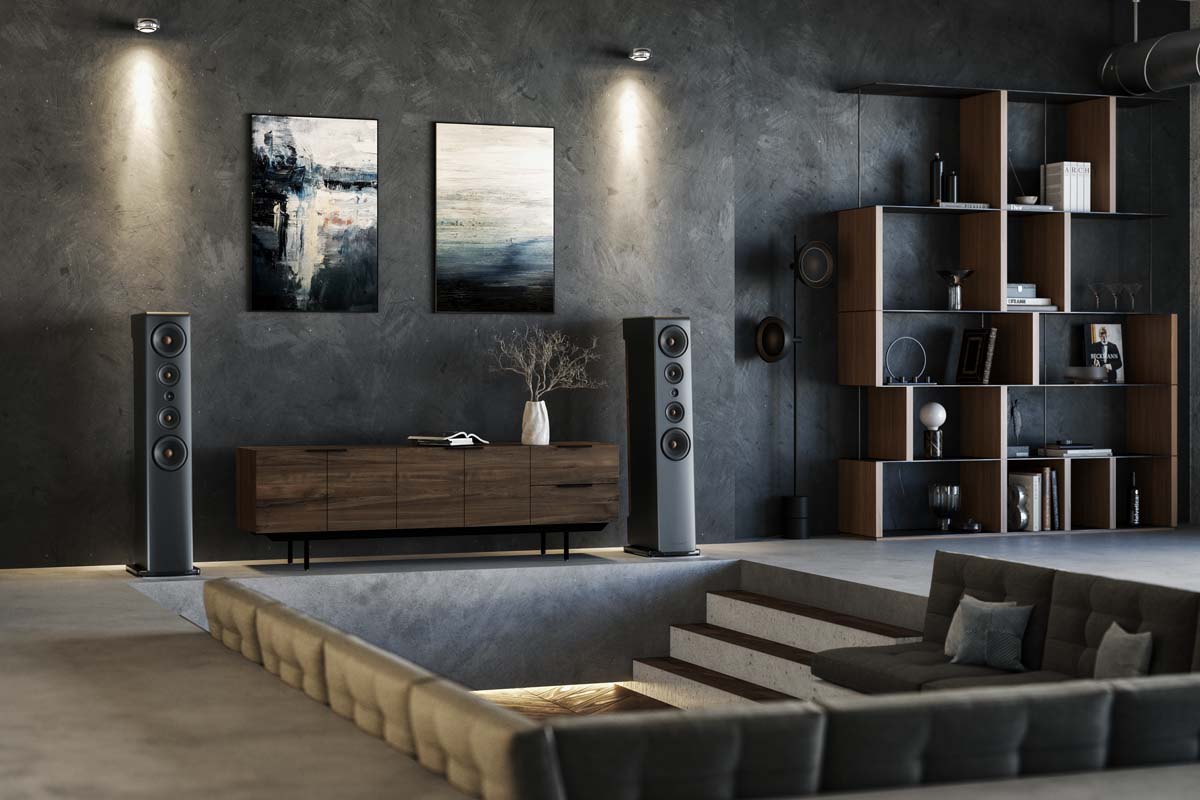 Of course, the outrageously good looks shouldn’t fool us into mistaking the Ceterra for a pretty poser – the driver lineup alone makes its true high-end ambitions clear: the aluminum cone drivers for midrange and bass are based on the Seas Excel series and were significantly modified for the Hamburg company, while the dual-ring radiator tweeter comes from Scan-Speak’s top-tier Illuminator line. The crossover also uses only premium components such as lacquered inductors and Jantzen Z-Cap film capacitors.