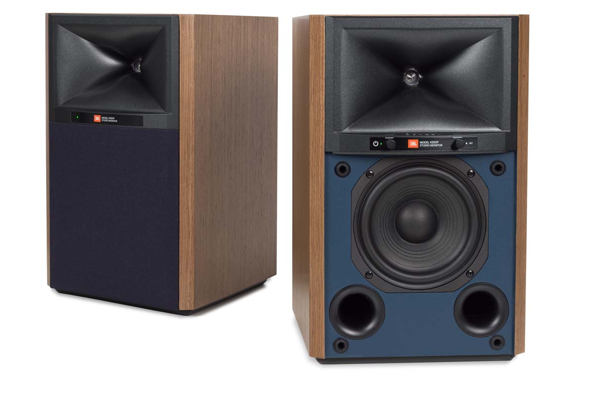 On closer inspection, the small JBL 4305P actually deliver what their blue front promises. A one inch compression driver lurks behind the classically shaped horn mouth, the inevitably somewhat smaller woofer is of course made of paper, and obviously, the embossed stiffening rings cannot be missing either. So far, so good. Inside the box, there is a high packing density of all the latest technology that the Harman Group has to offer, and right at the beginning of the inspection it causes great joy: Often, such active speakers are actually passive constructions, in which an internal mono amplifier drives a passive crossover. It looks active from the outside, but it’s not. Here, however, two specially configured Class D amplifiers take care of the two drivers and are fed by a DSP as a crossover. The crossover frequency of a good 1700 Hertz makes us curious how well the small JBL is able to handle voices.