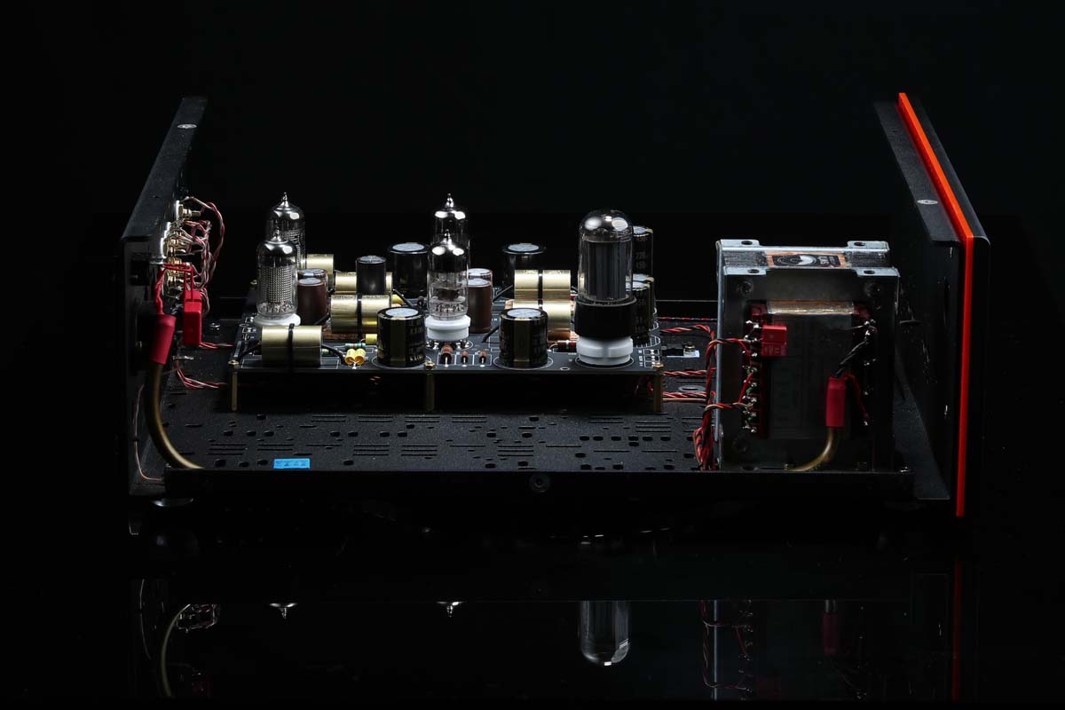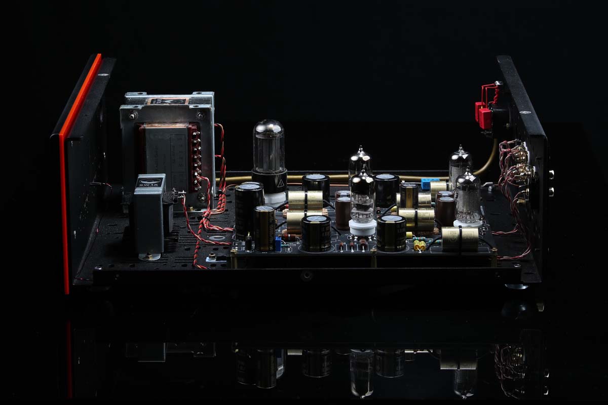 The SW1X LPU II follows this spirit without copying it. Metal housing, precision components, and tubes are not used here as decoration, but as an integral part of a musical ecosystem. The chassis supports the circuit stably and provides mechanical calm that can be felt in every note. The tubes sit like small sentinels on a pedestal, glowing softly and transmitting every vibration so that it reaches the ear without ever becoming intrusive. Even the smallest resistors and capacitors are chosen to respect every microscopic movement of the signal.