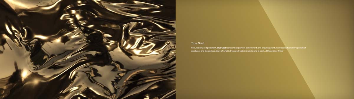 True Gold – Presented as a radiant gold tone, this gloss finish represents “aspiration, achievement, and enduring worth.” Wilson Audio calls it a reflection of “humanity’s pursuit of excellence.”