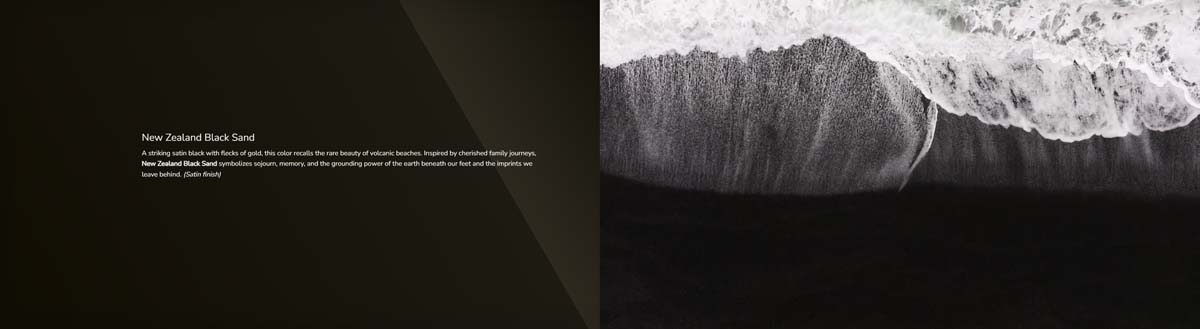 New Zealand Black Sand – A dark satin finish accented with gold flecks, drawing inspiration from volcanic beaches. Wilson Audio attributes to it themes of “memory, grounding, and the imprints we leave behind.”